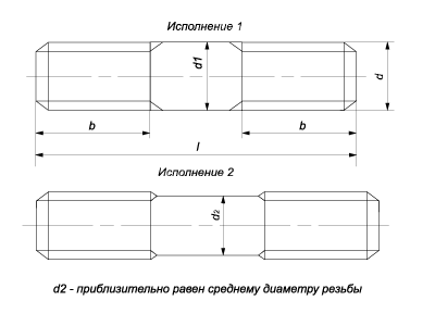 Шпилька для деталей с гладкими отверстиями, класс точности А ГОСТ 22043-76.