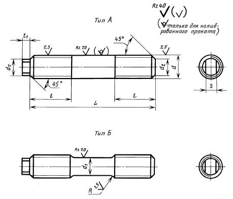 - с номинальным диаметром гладкой части меньшим диаметра резьбовой — тип Б.