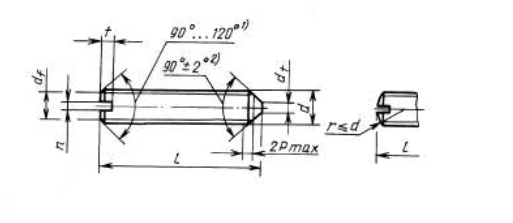 Винт установочный с коническим концом и прямым шлицем, класс точности А и В ГОСТ 1476-93.